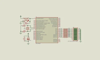 | PIC16F887 supplied at +5V DC. External crystal of 4 MHz fed the PIC device. SW1 uses to hard reset the MCU. bar graph LED displays the scrolling. |